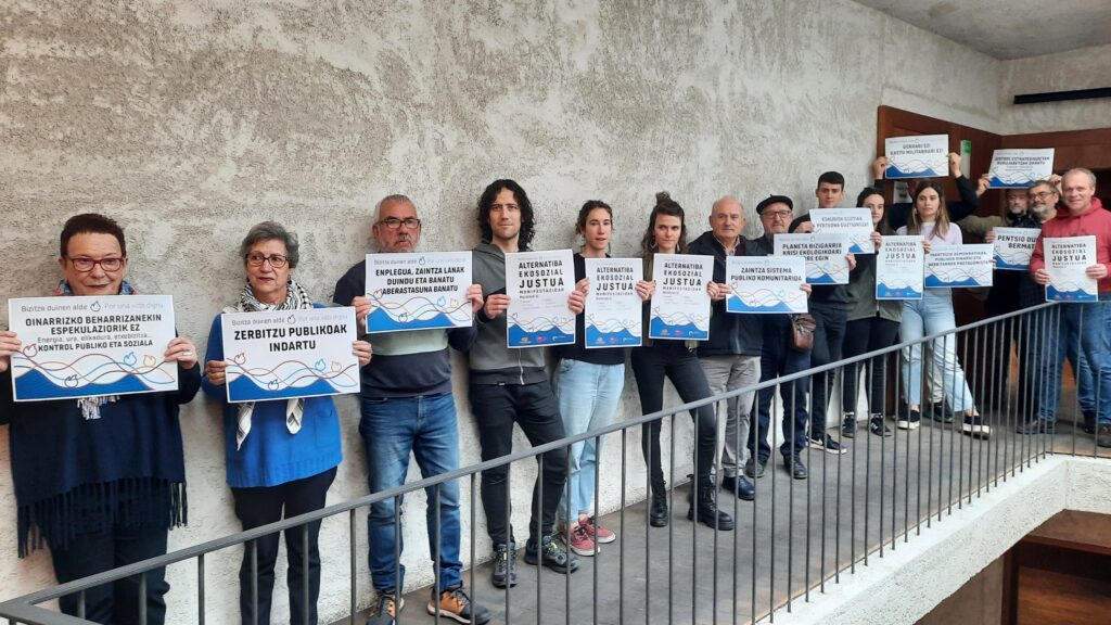 Alternatiba ekosozial justua beharrezkoa da. Egungo egoerak krisi ekologiko sakonera eta bizitza eta lan gero eta prekarioagoetara garamatza. Erregai fosilei eta ekonomiaren hazkunde infinituaren logikari lotuta jarraitzen dugu. Murrizketek, merkantilizazioak eta prezio altuek elikadura osasuntsua, pentsio duinak edo etxebizitza duina izateko eskubidea ukatzen dute. Zerbitzu publikoak eraisten ari dira. Zaintza lanak funtsezkoak dira, baina egun zaintza sistema publikoa ez dago bermatuta. Matxismoa eta arrazakeria gorantz doaz. Gerrak eta autoritarismoa ugaritzen ari dira. Bitartean, gero eta irabazi handiagoak metatzen dituzte enpresariek, finantza-funtsek, supermerkatu handiek, banketxeek. Egungo gobernuek eta maila instituzionaletik sustatzen dituzten politika publikoak ez nahikoak dira norabide hau aldatzeko. Askotan bide berean sakontzen dute.