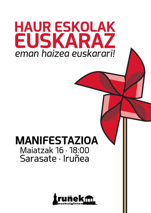 – Osteguna 16, Haur Eskolak Euskaraz Iruñean, 18:00etan Sarasaten, Iruñeko euskalgintzak deitua.