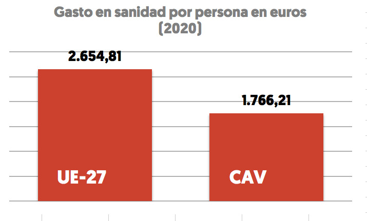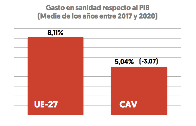 En palabras del responsable de Acción Social, “por un lado, hay que dar cabida en la política presupuestaria a la protección de la gente trabajadora y a los cuidados”. Incluye dentro de ese objetivo la sanidad, la educación, las pensiones o el desarrollo del sistema público comunitario de cuidados. «Aunque ha señalado que la inversión en sanidad es la mayor de la historia, el consejero Aspiazu no dice que todavía estamos lejos de la media europea, por debajo de los tres puntos». «Precisamente, acabamos de conocer que el número de quejas y reclamaciones de Osakidetza ha crecido y es evidente que las intenciones de privatización se mantienen. Hay que recordar que por iniciativa de LAB se han conseguido suspender contratos de privatización de diversos servicios de Osakidetza por un importe total de más de 11.000.000 de euros «.