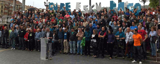 Horregatik, ziur gaude milaka ordezkari sindikalen eta langileren sentipena islatzen dugula, gaur hemen bildu den ordezkaritza sinboliko honek dei egiten du ekainaren 8an Gure Esku Dago dinamikak antolatu duen ekitaldian parte hartzera.
