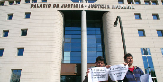 Ayer, los sindicatos ELA, LAB, ESK, STEE-EILAS, HIRU, EHNE, CNT Y CGT, intentaron mantener una pequeña reunión con la Ilma. Sra. Dª María Alemán Ezcaray a efectos de entregarle en mano las 913 auto inculpaciones recogidas en relación con la causa de los #5 de Estafeta que se ha juzgado hoy en el Palacio de Justicia.