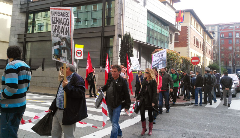 LAB sindikatuak diruz betetako 40 zaku (Ali Babaren 40 lapurrei erreferentzia eginez) eraman ditu sinbolikoki Patronalaren egoitzatik Ogasunera, patronalak zerga gehiago ordain ditzan aldarrikatzeko.