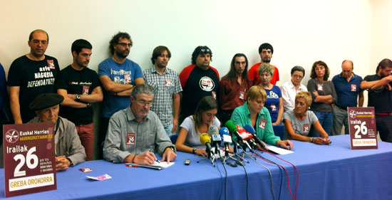 Asimismo, Etxaide ha exigido "que no se apliquen las reformas y se dé marcha atras en la politica de recortes que se esta desarrollando desde las instituciones vascas; que se de un giro radical en las politicas económicas y sociales; y que las instituciones vascas, los gobiernos de Gasteiz e Iruña se pongan el frente de la reivindicación del derecho que tenemos de decidir sobre las politicas económicas y sociales que se tienen que desarrollar en nuestro ámbito".