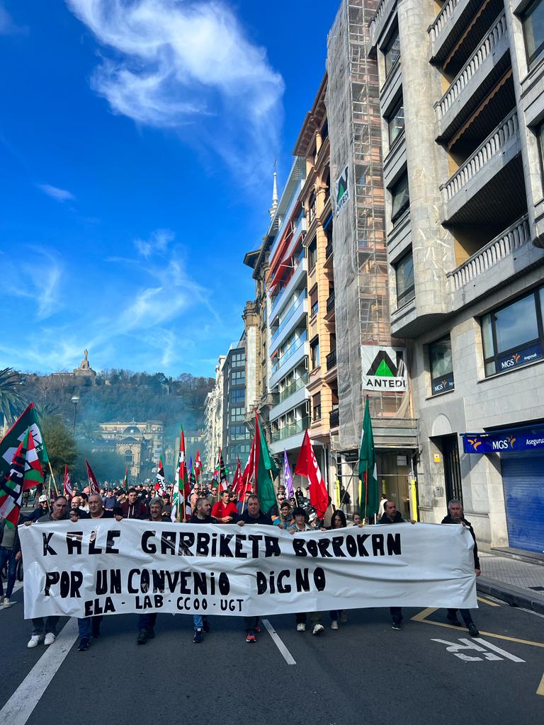 Manifestazioan sektoreko ehundaka langile batu ziren; kale-garbiketa, zabor-bilketa, zabortegiak, erraustegiak, hondartzen garbiketa, gaikako bilketa, birziklatze-plantak, estolderia, etab lanean ari diren langileak. Hitzarmenaren negoziaketa otsailean hasi bazen ere, Aselip patronalak oraindik ez du proposamen oso eta duinik jarri mahai gainean.