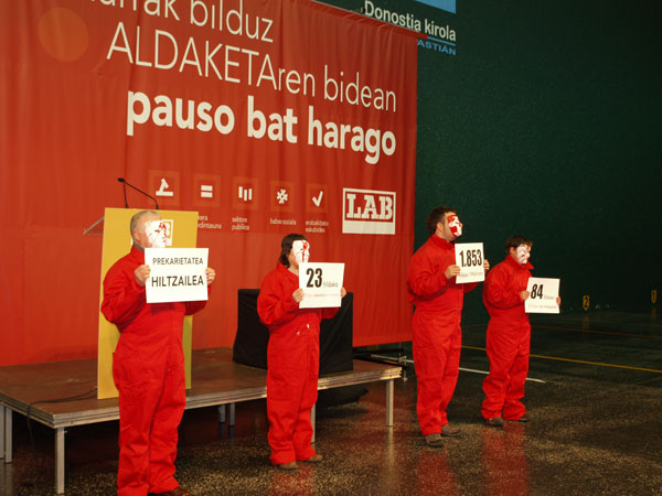 Gaur, martxoak 2, LAB sindikatuak Delegatuen Asanblada egin du Donostiako Atano III pilotalekuan, "Indarrak bilduz, aldaketaren bidean pauso bat harago" lemapean. Delegatuen urteko hitzordu nagusi hau gaur bertan lan istripuan hil den langilea gogora ekarriz hasi dute, honekin batera azken urteotan prekarietateak utzitako balantze beltza plazaratu da (1853 hildako 1996tik, 23 hildako amiantoaren eraginez 2010 urtean, 84 heriotz istripu 2010ean…).
