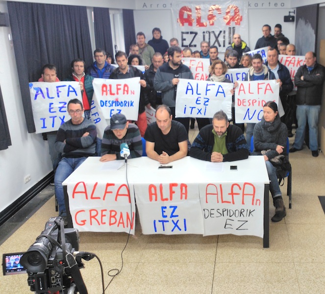 Horrengatik, Grupo Alfako behargin guztiak eta Eibarko hiritarrak deitzen ditugu bat egin dezaten azaroaren 29an, 19:00etan eta Untzaga plazatik abiatuko den manifestazioarekin.