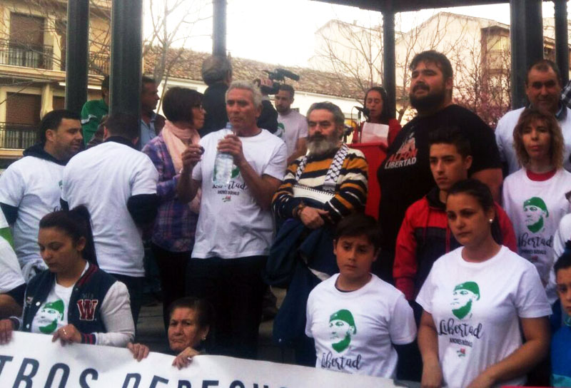 El sindicato LAB participó en la multitudinaria manifestación celebrada en Jódar el pasado sábado exigiendo la libertad del compañero del SAT Andrés Bódalo. Itxaso Viñe, compañera de LAB, expresó el apoyo del sindicato a Bódalo y al SAT y exigió, como los allí reunidos, las libertad de Andrés.