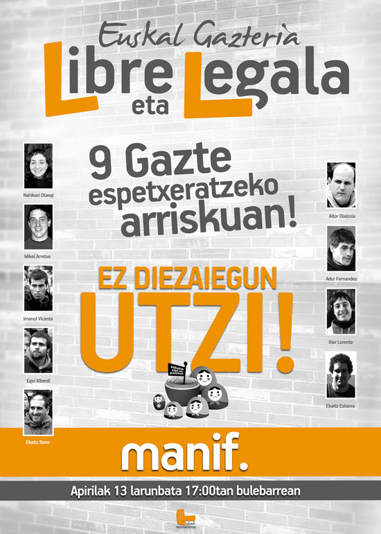 Apirilak 13 manifestazioa Donostiako 9 gazteei ezarritako kartzela zigorra salatzeko