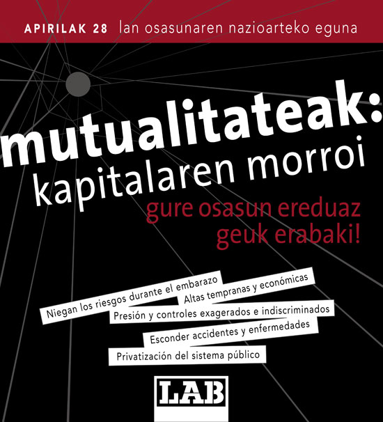 Laburbilduz, egungo ereduak nahiz honi etengabe egiten zaizkion erreformak sistema publikoa desegitera bideratuta daude: osasunaren eredu pribatu eta ekonomizistarantz abiatu gara, non botere osoa emango baitzaien, berez, enpresarien elkarteak diren mutualitateei. Ez da inolako kontrolik ezarriko; ez da iruzurra jazarriko laneko gaixotasun eta istripuen erregistroan. Hau guztia egiteko, kudeaketa “pribatua” publikoa baino hobea dela diote, baina gizarteak alta goiztiarrengatik, gaixo dauden langileen kaleratzeengatik edo saihes daitezkeen ondorio txarrengatik ordaintzen dituen kostuak ezkutatzen dituzte.