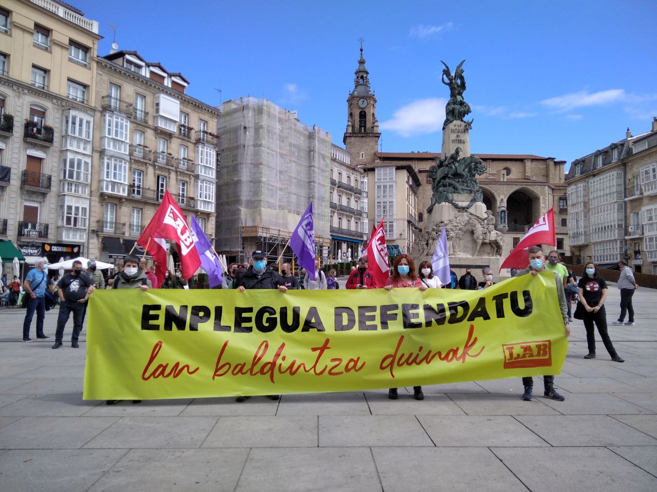 Elkarretaratzea egin dugu Gasteizko Andra Mari Zuriaren Plazan, Arabako enpleguaren eta lan-baldintza duinen defentsan. Urteko lehen sei hilabete hauetan, langileok kaleak hartu ditugu, bakoitzak bere sektore edo errealitatean oinarrituta, baina guztiok lotura komun batekin: enpleguaren eta lan-baldintzen defentsa.