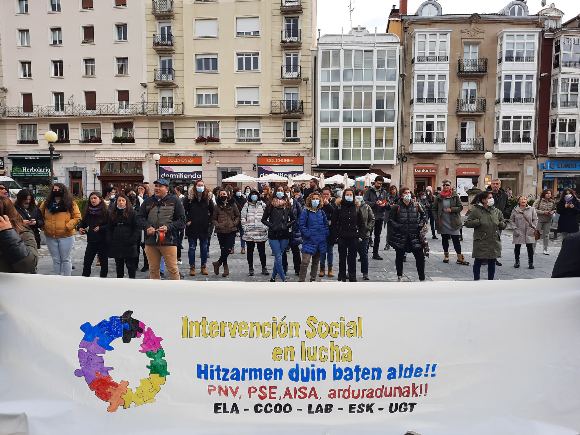 Arabako Esku-hartze Sozialaren sektoreak mobilizazioekin jarraitzen du, hitzarmen duin baten alde. Aldundiaren aurrean mobilizatu gara berriro, LAB, ELA, CCOO, ESK eta UGT sindikatuok deituta.