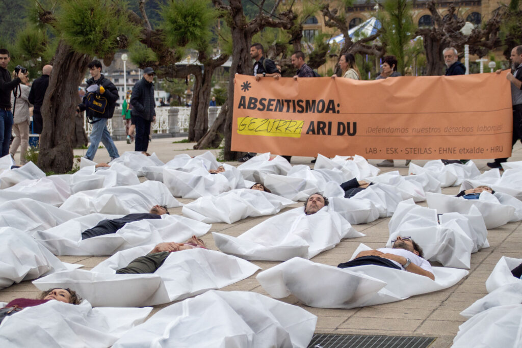 Laneko Segurtasunaren eta Osasunaren Nazioarteko Eguna da apirilaren 28a. Hori dela eta, LAB, ESK, STEILAS, EHNE-Etxalde eta HIRU sindikatuek manifestazioa egin dute Donostian, Absentismoa: gezurra ari du. Gure lan-eskubideak defenda ditzagun! lelopean. Eusko Jaurlaritzaren egoitzaren parean amaitu da mobilizazioa, eta sindikatuek 2025ean Euskal Herrian hildako 84 langileak irudikatu dituzte.