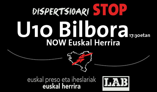 LABen argi dugu, bihar, urtarrilak 10, Bilbon izango gara eta ildo beretik, mobilizazioan parte hartzeko deia egiten diogu gure militantziari nahiz euskal langileriari. Dispertsioarekin amaituz, eskubide guztien jabe, Euskal Presoak Euskal Herriratzeko aldarriarekin Bilboko kaleak betetzeko unea iritsi zaigu.