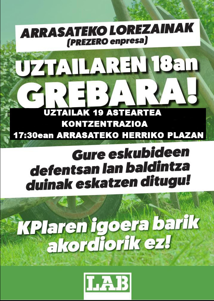 Badira 15 urte baino gehiago Udalak ez duela lorezaintza zerbitzuan berrikuspen ekonomikorik egin eta langileak igoerarik gabe egon dira urte hauetan. Duela hilabete batzuk Udalarekin bildu ginen egoera hau aldatu eta enpresei egiten zaien eskaintza ekonomikoa handitu dezaten eskatzeko. Langileei soldata duinak bermatzeko. Baina enpresak ez du KPIaren igoera aplikatzerik nahi.