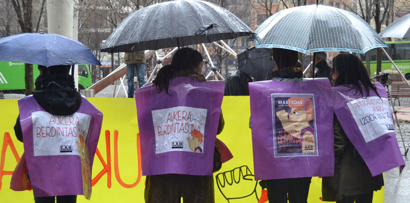 Horrez gain LABek instituzioei urratsak ematen has daitezela exigitu die. Hamar urte pasa dira berdintasun legea martxan jarri zenetik eta gaur egun emakumeen egoera orduan baino kaskarragoa da. Egoera horren atzean politika zehatzak daude, politikak aldatuz gero, egoera ere aldatuko litzateke.