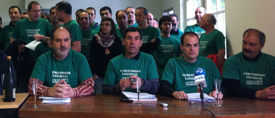 «2012ko irailaren 25etik mobilizazioetan, eta urte bereko abenduaren 5az geroztik, 140 egun baino gehiago greba mugagabean eman ditugu Cementos Lemonako langileek, Cementos Portland Valderrivasek ezarritako enplegu etete espedientearen ondorioz izandako kaleratzeen aurka.