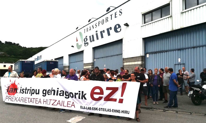 Zornotzako Transportes Aguirre enpresako langile bat hil zen astelehenean, lan istripu ez traumatiko batean, Muxikan, deskarga lanetan ari zenean. Enpresaren aurrean elkarretaratze bat egin dugu gaur, Zornotzako Condor industriagunean, lan heriotza salatzeko.