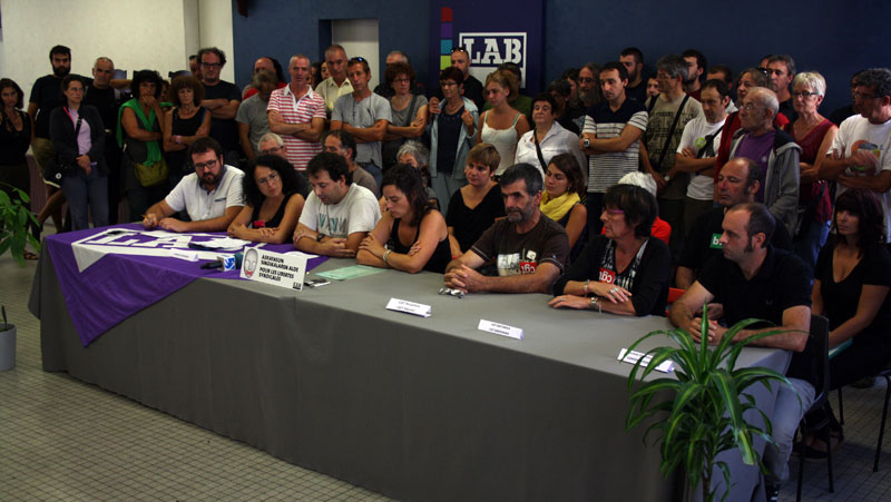 Gaur, hilak 10, Baionako Lan Burtsan jende anitz bildu da LAB sindikatuari beren sostengua adierazi eta bizi dugun eraso sindikal, kultural eta linguistikoa salatzeko. Norbanakoez gain alderdi politiko zein aktore sozio ekonomikoek ere presente egon nahi izan dute hitzordu honetan. Besteak beste, LABek Euskal Konfederazioa, STC, EELV Pays Basque, Sud eta Solidairesen babesa jaso du.