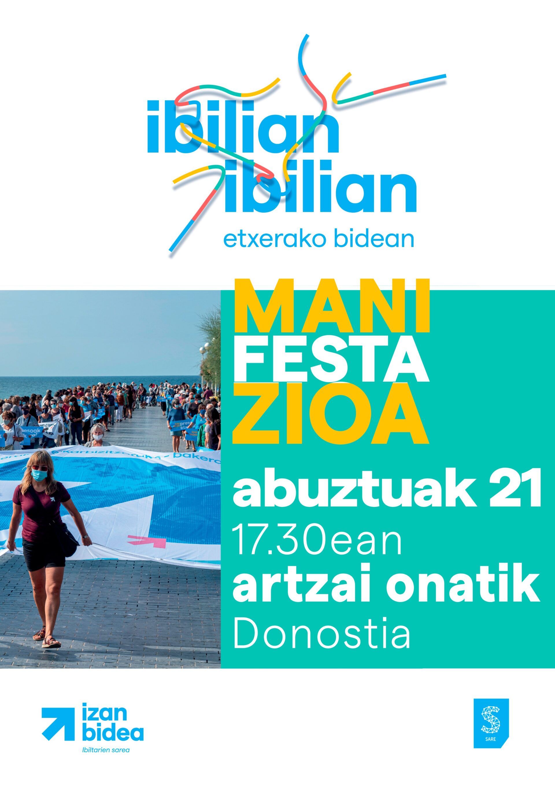 Sarek manifestazioa deitu du abuztuaren 21erako Donostian. “Ibilian ibilian, etxerako bidean” lemarekin, mobilizazioa 17:30ean abiatuko da Artzain Onetik. Bat egiten dugu mobilizazio honekin eta bertan parte hartzeko deia egiten dugu, kalera ateratzea garrantzitsua baita indarrean dagoen salbuespenezko kartzela politikarekin amaitzeko. Preso, iheslari eta deportatuak etxerako bidean jartzeko urratsak eman behar ditugu.