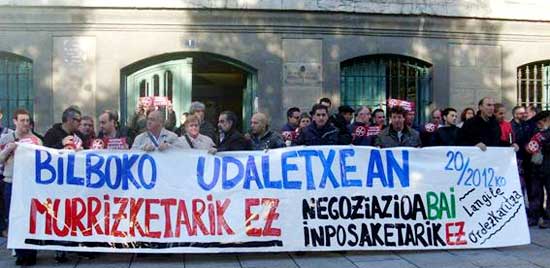 Bilboko Udaleko Komitea osatzen duten sindikatuek, Bilboko Udalean ordezkaritza duten talde politikoei Madrilgo Gobernuak ezarri duen dekretuaren aurrean duten jarrera helarazi die gaur goizean. Murrizketen aurrean negoziazioaren aldeko apustua egin dezaten eskatu dute udaletxe aurrean egindako elkarretaratzean.