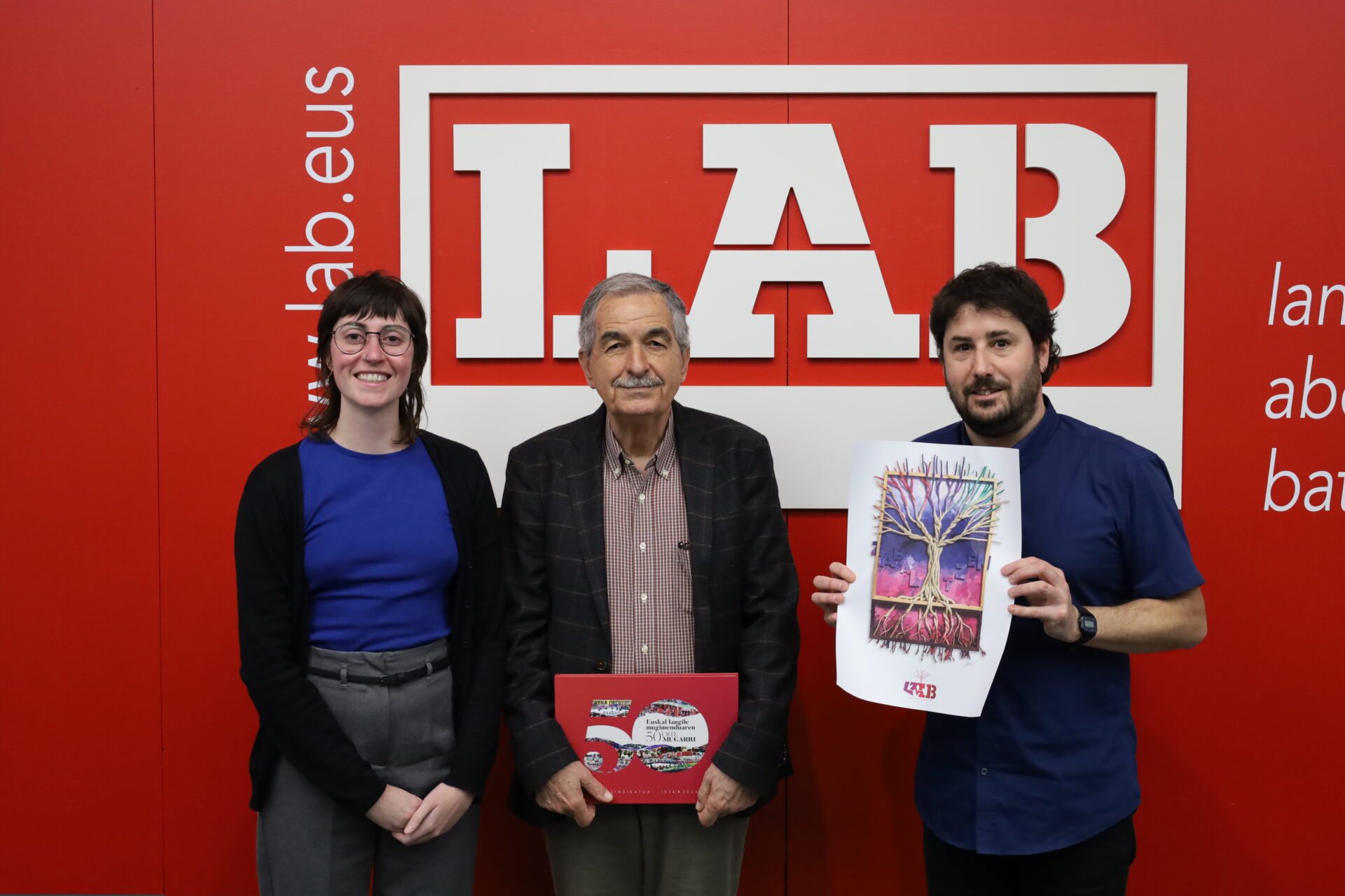 Era berean, LABeko kideek “Euskal langile mugimenduaren 50 urte, 50 mugarri” argazkiaren liburuaren ale bat eta sindikatuaren 50. urteurrenaren Zabaltzen artelanaren lamina bat oparitu dizkiote.