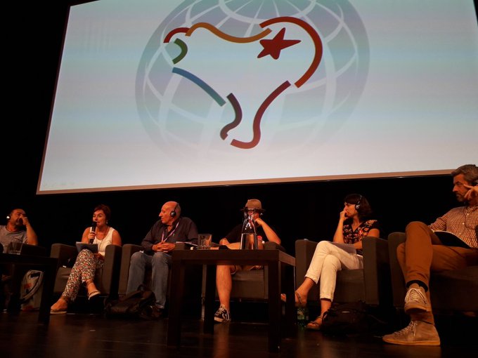 Arratsaldeko hitzaldian, Ficobako 1. aretoa beteta zegoela hartu du hitza Garbiñe Aranburuk, Solidaires, Attac eta Greenpeace erakundeetako ordezkariekin batera, besteak beste.