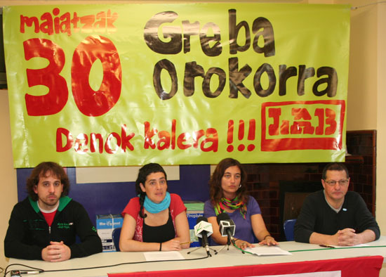 Buruntza-Goierriko LAB medioen aurrean maiatzaren 30eko greba orokorra iragarri eta bertan parte hartzeak duen garrantzia azpimarratu zuen Tolosan.