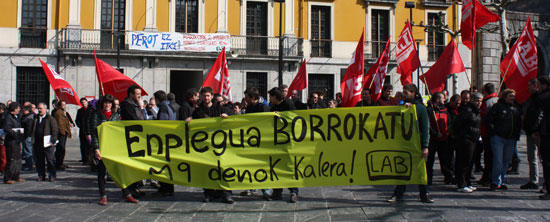 Buruntza-Goierriko LABeko delegatuek elkarretaratzea egin zuten pasadan ostiralean, martxoaren 9an "Enplegua defenda dezagun" lelopean Bilbo eta Iruñean egingo diren manifestazioei bultzada emateko.