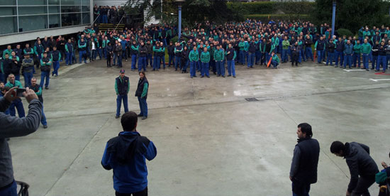 Bilera hau burutzen zen bitartean langileak kontzentratuta egon ziren bulego nagusiaren aurrean eta bertan informatu zaie bilerak emandakoari buruz.