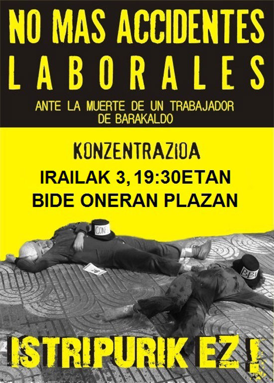 Colectivos sociales y sindicales llaman a concentrarse en Barakaldo a las 19:30 la Plaza Bide Onera para denunciar la última muerte laboral