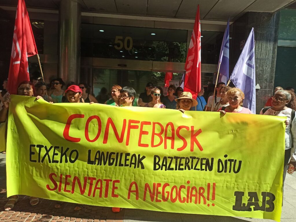 Gaur mobilizazioa egin du dugu Confebasken egoitzaren aurrean, etxeko langileentzako hitzarmena eskatu eta honen inguruan EAEko patronala izaten ari den jarrera salatzeko. Sindikatuaren ekimenez, ekainaren 9an egin zen hitzarmenaren negoziazio mahaia eratzeko bilera Bilboko Lan Harremanen Kontseiluan, etxeko langileen EAEko lehen hitzarmen kolektiboa negoziatzeko abiapuntua. Egun horretan Confesbakek uko egin zion etxeko langileen baldintzak negoziatzeari eta horren ondorioz, demanda bat erregistratu zuen LABek Confebasken aurka, etxeko langileen negoziazio kolektiborako eskubidea urratzeagatik.