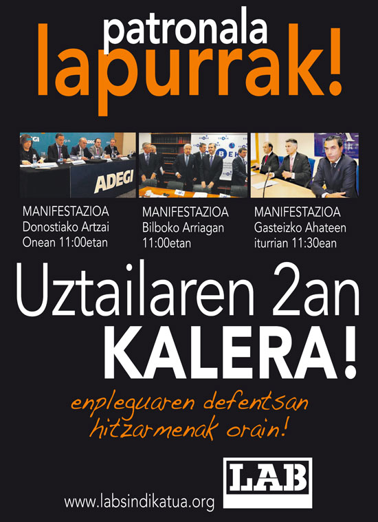 Patronala lapurrak! Uztailaren 2an KALERA! Enpleguaren defentsan hitzarmenak orain!