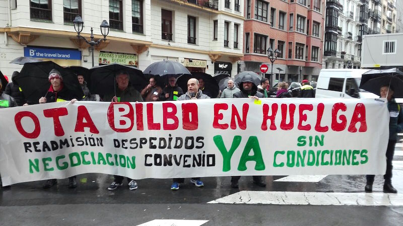 -Enpresa bi hauen jarrera salatu nahi dugu. Lizitazioa eskuratzeko asmoz, prezioa nabarmen jaitsi zuen. Orain Bilboko Udalak pleguetan ezarritako baldintzak ezin ditu bete eta langileak erabiltzen ari da Udalarekin berriz negoziatzeko.