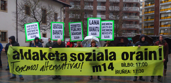 Bilera eta gero, gutun sozialaren inguruko propaganda banatu dute delegatuek, megafoniatik martxoaren 14an Bilbora joateko deia egiten zuen kuñakin lagunduta. Hona hemen argazkiak.