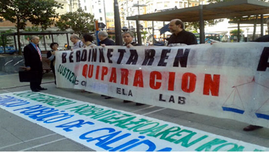El pasado viernes, delegados y delegadas de CCOO, ELA, LAB, UGT y CGT en la Administración de Justicia se concentraron frente al edificio del Gobierno Vasco de Bilbo, al conocer que el Consejero de Justicia y el Director de la Administración de Justicia iban a acudir allí a mantener una reunión con la Asociación Profesional de Registradores.