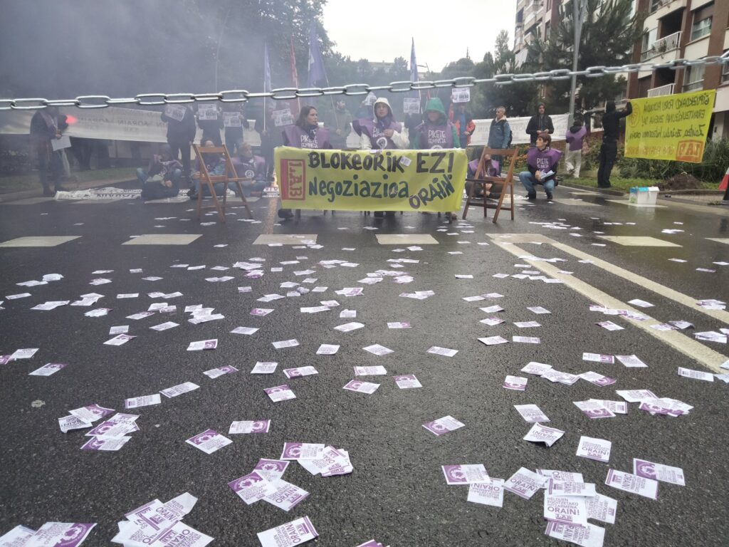 Greba sorta honetako lehen egunean, ekintza egin dugu Donostian, Amarako sarreran. Errepidea blokeatu dugu, negoziazioa bera blokeatuta dagoela salatzeko. Mezu garbi bat helarazi diogu patronalari: borrokan jarraituko dugu, langileen lan baldintzak duindu eta kalitatezko zerbitzu bat eskaini arte.