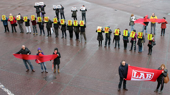 ELA, LAB, ESK, STEILAS, CGT/LKN, CNT, HIRU, EHNE eta Etxalde sindikatuek elkarretaratzeak egin dituzte gaur Bilbon, Donostian, Gasteizen eta Iruñean, “Ezin da gehiago luzatu,...