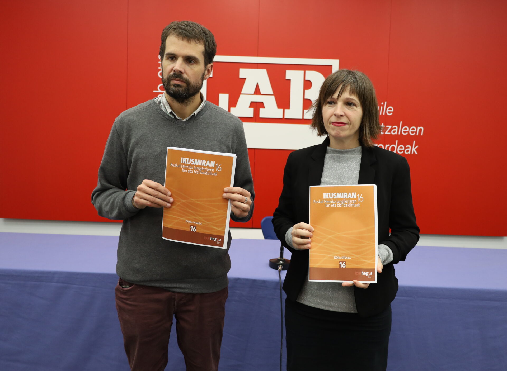 Gaur Bilbon eginiko prentsaurrekoan, euskal langileen inguruko argazkia biltzen duen Ikusmiran informea aurkeztu du LABek. Edurne Larrañaga Ipar Hegoako kideak azterketa horren ondorio nagusiak aurkeztu ditu.
