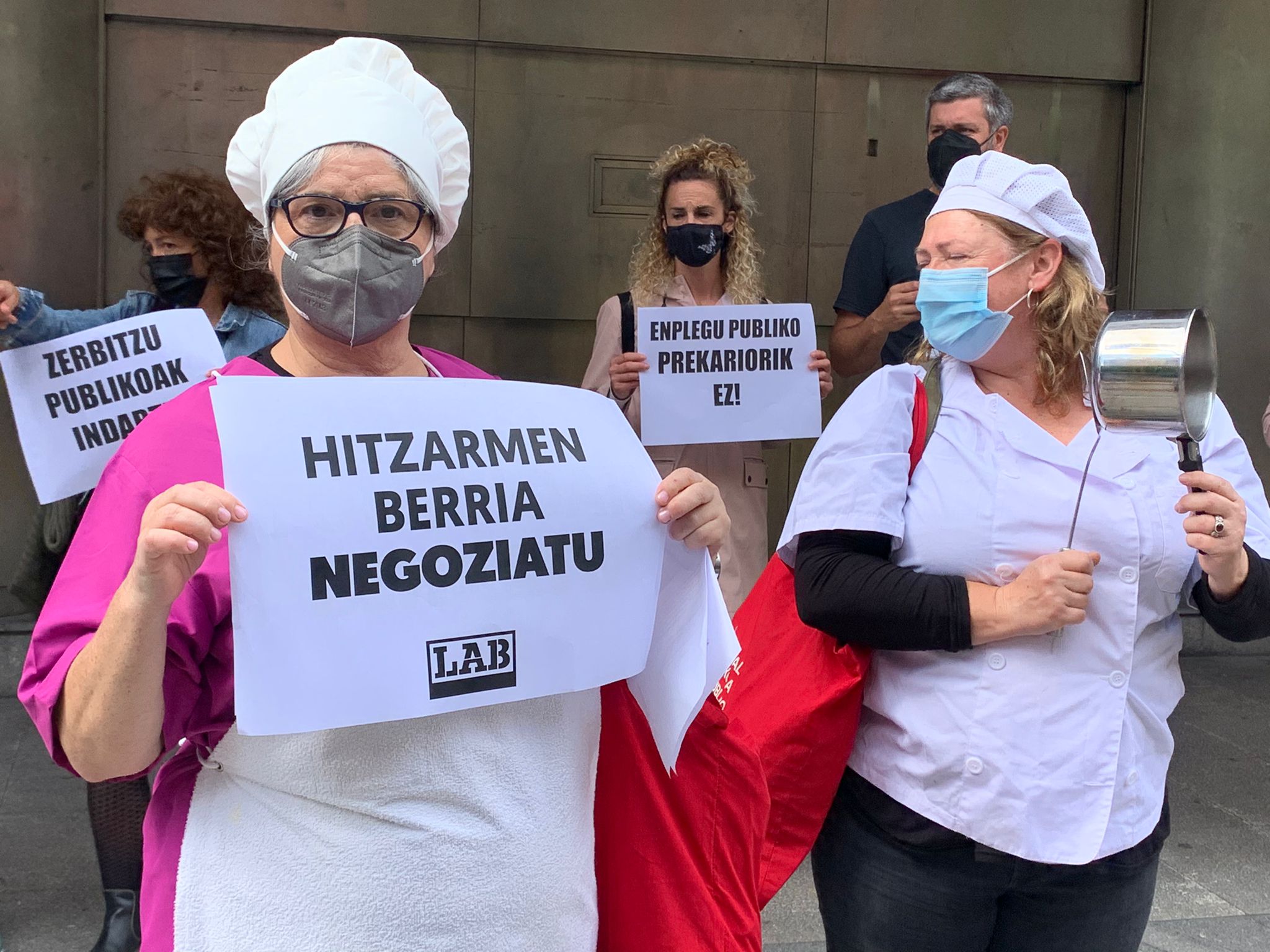 Bilbo eta Donostiako Jaurlaritzaren ordezkaritzetan elkarretaratzea gauzatu dugu, Hezkuntza saileko sukaldari eta garbitzaileen lan hitzarmenaren negoziazioa seriotasunez har dezaten eskatzeko. Egun indarrean dugun Sukaldari eta Garbitzaileen lan hitzarmena 2009koa da. Data horretatik hona, ikastetxeetako errealitatea zeharo aldatu da eta egoerari egokitzen zaion hitzarmena behar dugu.