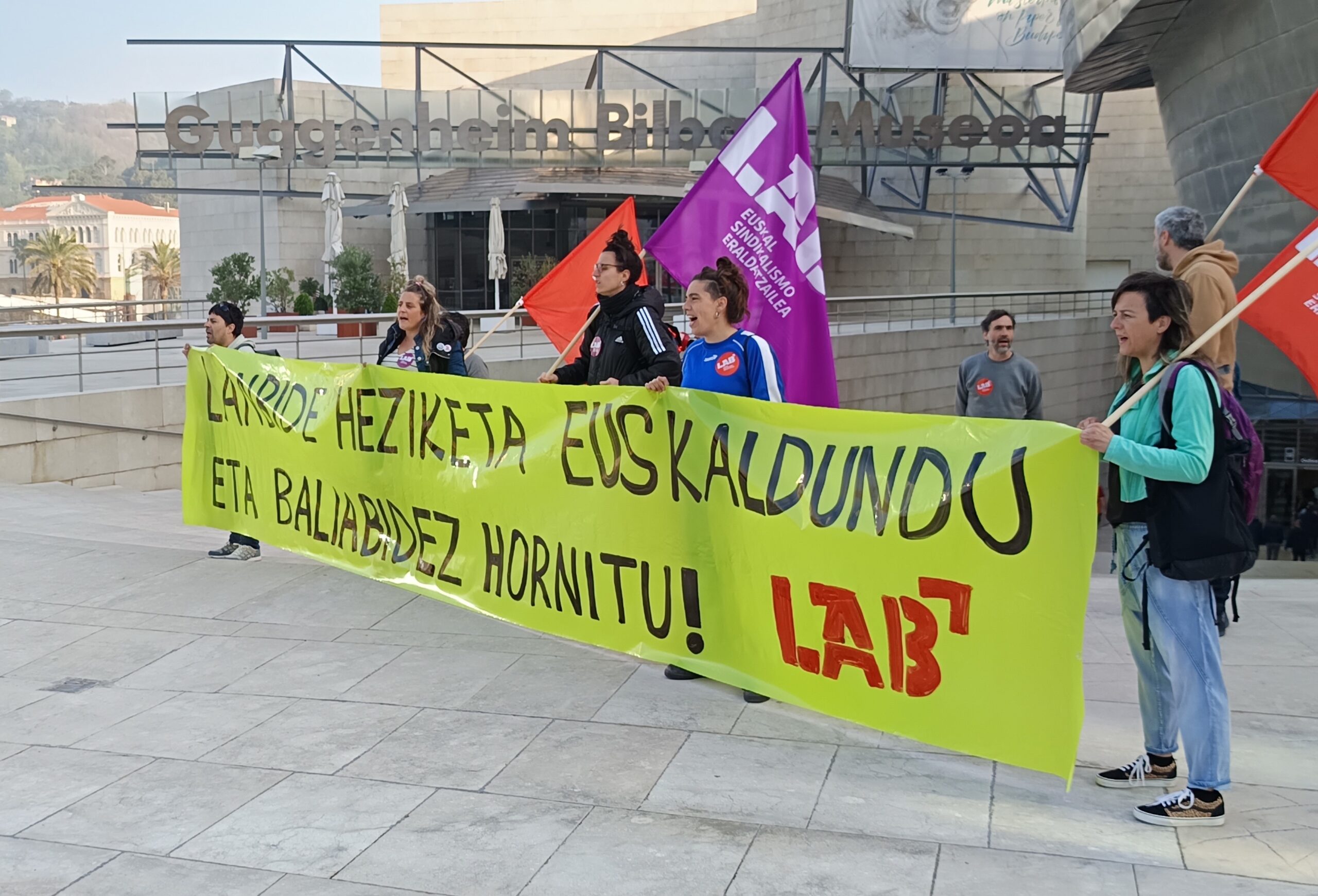 Gaur, Bilboko Guggenheim Museoan kontzentrazioa egin du LABek Hezkuntza Sailak antolatutako Lanbide Heziketako Nazioarteko Topaketaren atarian, lanbide heziketa euskaldundu eta baliabidez hornitzea eskatzeko.