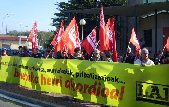 enplegu suntsipena atzera bota, baina ez da egiten. Honi dagokionean PSEren jokabidea espresuki kritikatu nahi dugu, Parlamentuan neurria atzera botatzeko eskatu baitzuen, eta akordio honetarako ezinbesteko gaitzat jaso ez duenean orduko jarrera parlamentario hura itxurakeria izan zela frogatu du.