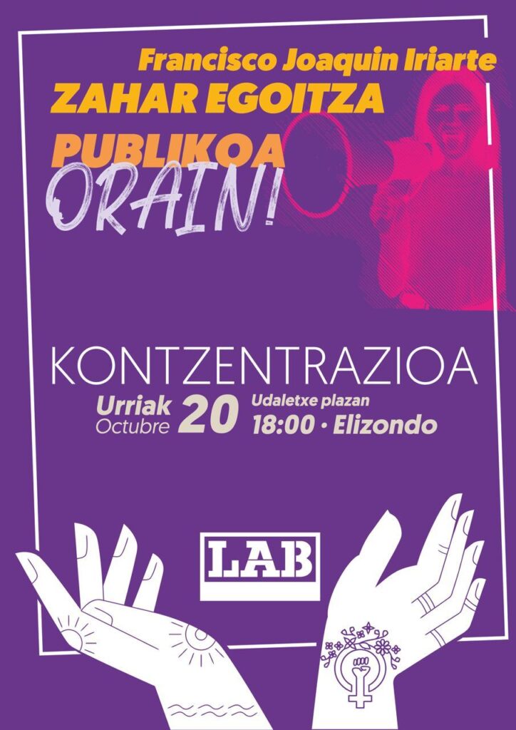 Elizondoko Francisco Joaquin Iriarte zahar etxea publifikatzeko Baztango Udalak eginiko urratsen aurka salaketa paratu du une honetan zerbitzu hori kudeatzen duen IDEA enpresak. Langileek kezkaz jaso dute albiste hori eta, LAB sindikatuarekin batera -bereak baitira Enpresa Batzordeko bederatzi delegatuak- elkarretaratzea deitu dute urriaren 20rako, Elizondon, zahar etxea publifikatzearen alde eta lanpostuak zein lan baldintza onak ziurtatzearen alde. Elkarretaratzea 18:00etan izanen da, herriko plazan.