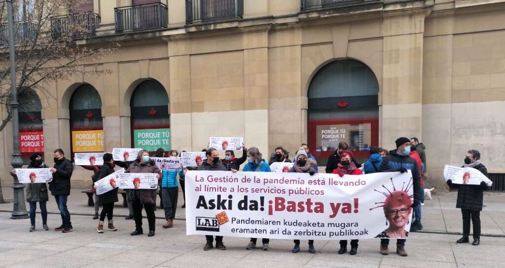 Elkarretaratzeak egin ditugu Nafarroan, pandemiaren kudeaketa zerbitzu publikoak mugara eramaten ari dela salatzeko
