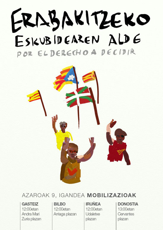 Igande honetan, azaroak 9, Kataluniako galdeketa egunean, Hego Euskal Herriko hiriburuetan deitu diren mobilizazioetan parte hartzeko deia luzatzen die LAB sindikatuak euskal langile eta herritar guztiei.