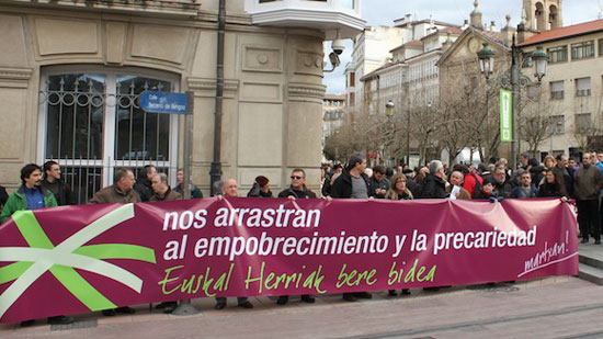 Pobrezia eta prekarietatearen kontrako kanpainren barruan, gaur, Euskal Herriko sindikatu eta eragile sozialak biltzen dituen plataformak elkarretaratzea egin du Gasteizko Legebiltzarraren aurrean.