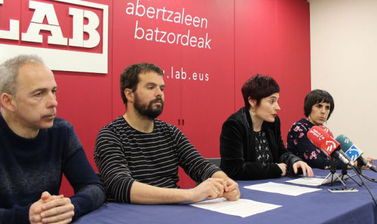 LABek 2018ko Aberri Egunerako Adierazpena aurkeztu du gaur komunikabideen aurrean. Dokumentua martxoaren 19ko Nazio Biltzarrean onartu zen. Hain zuzen ere, Garbiñe Aranburu idazkari nagusia, Igor Arroyo idazkari nagusi ondokoa, Ekintza Sindikala eta Negoziazio Kolektiboko idazkari Xabier Ugartemendia eta Komunikazio idazkari Maider Jauregi izan dira agerraldian, eta testuinguru politiko, ekonomiko eta sozialaren irakurketa egin dute.