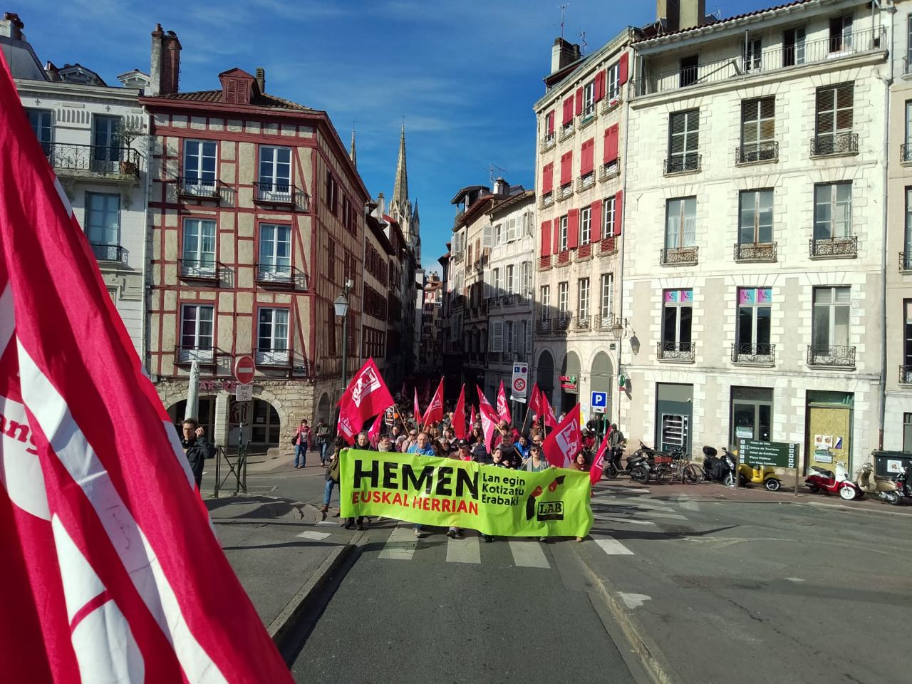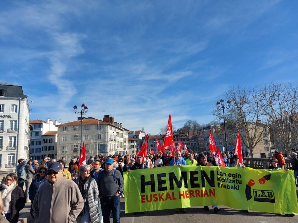 Beste behin ere, bosgarrenez, Ipar Euskal Herritarrok greba egin dugu Macron gobernuaren erretreten erreformaren aurka. Deialdiz deialdi jendetza batu dute sindikatuen mobilizazioek, eta langileok borrokan jarraitzeko asmoa dugu. Gaurkoan 10.000 pertsonatik gora bildu du Baionako manifestazioak.