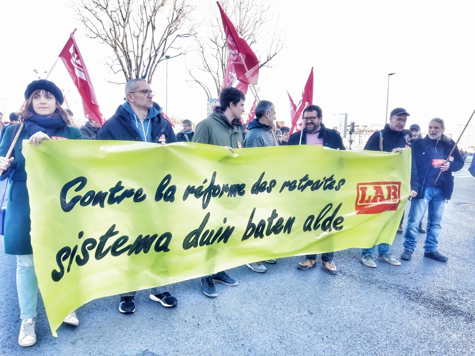 Macronen Gobernuak inposatu nahi duen erretreten erreformaren aurka irten gara kalera, berriro ere. Hain zuzen ere, manifestazio bateratua egin dugu Baionako geltokitik abiatuta, eta 1.500 lagun inguru elkartu gara. Bertan izan gara hainbat sindikatu eta eragiletako ordezkariak, borroka indartu eta mugimendua handitzeko unea den heinean. Beste manifestazio bat egingo dugu bihar, 10:30ean, Hendaiako Herriko Etxetik abiatuta. Ostegunean, berriz, Baionako geltokitik abiatuko dugu berriro protesta, 10:30ean ere.