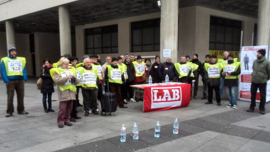 Egungo pentsioek jateko ere ematen ez dutela salatzeko, LABeko Pentsiodunen Arloko kideak, hainbat langilerekin batera, 12 orduko baraualdia egiten ari dira Iruñeko Gizarte Segurantzaren egoitzaren ondoan. Baraualdia goizeko 8:00etan hasi da eta 20:00etan amaituko da. Informazio banaketaz gain, hainbat ekitaldi egingo dira, esaterako Fermin Valenciaren kontzertua 13:00etan eta giza-katea Gobernu ordezkaritzara arte 19:00etan.