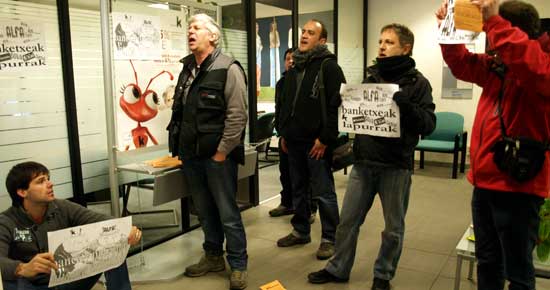 Estamos viendo, día tras día, que se están anteponiendo los intereses de la banca y de las grandes empresas sobre los intereses de los y las trabajadoras y la sociedad en general, y eso es precisamente lo que los trabajadores y trabajadoras están denunciando mediante esta acción pacifica: la alianza criminal y despiadada de la banca y patronal. No podemos permitir que la banca esté jugando con los puestos de trabajo, con los derechos laborales, con la vivienda… en definitiva, con los derechos más fundamentales de las personas cuando han sido ellos mismos y los grandes empresarios los que nos han traído a esta situación de crisis.
